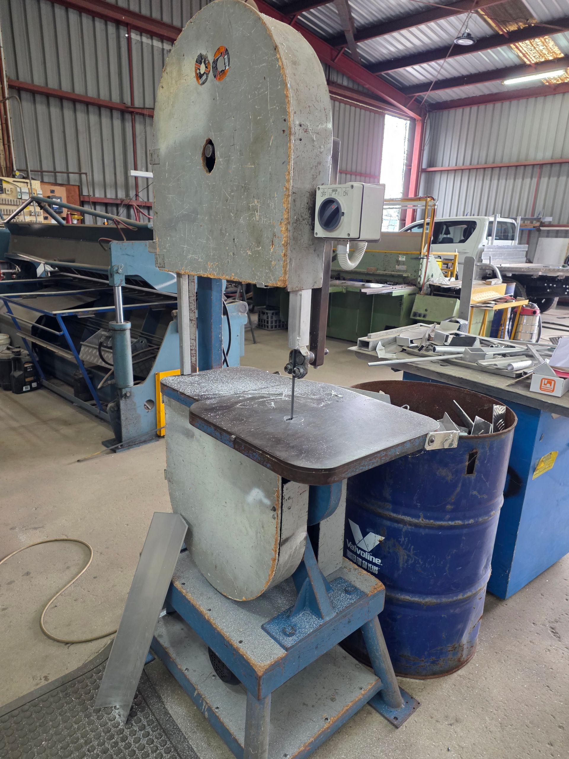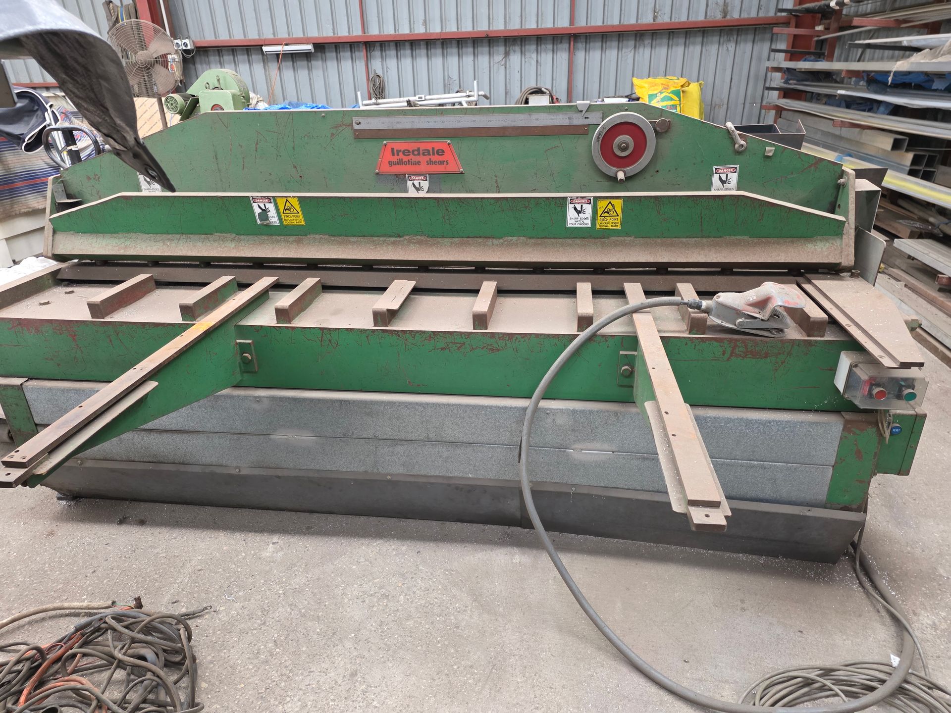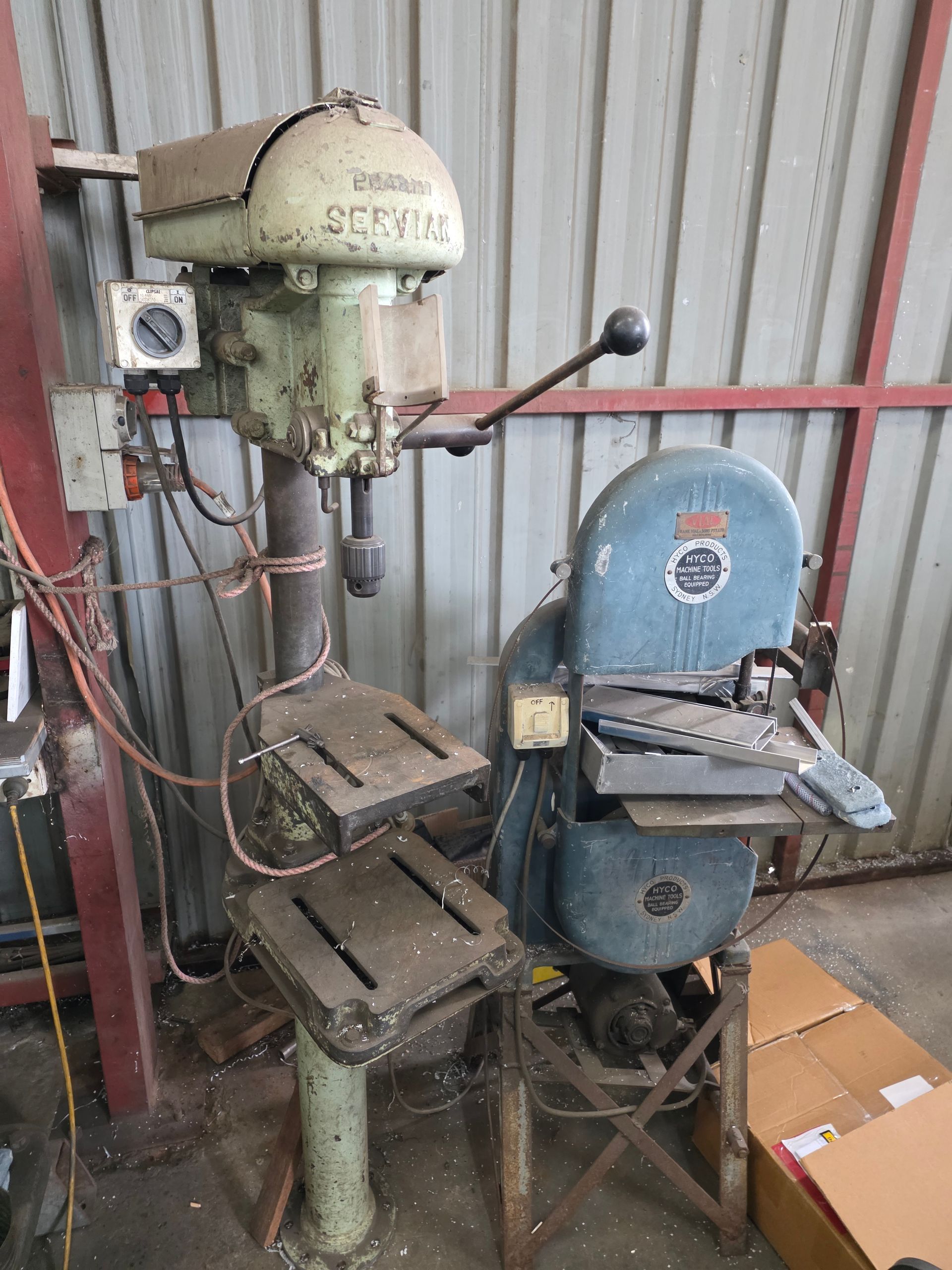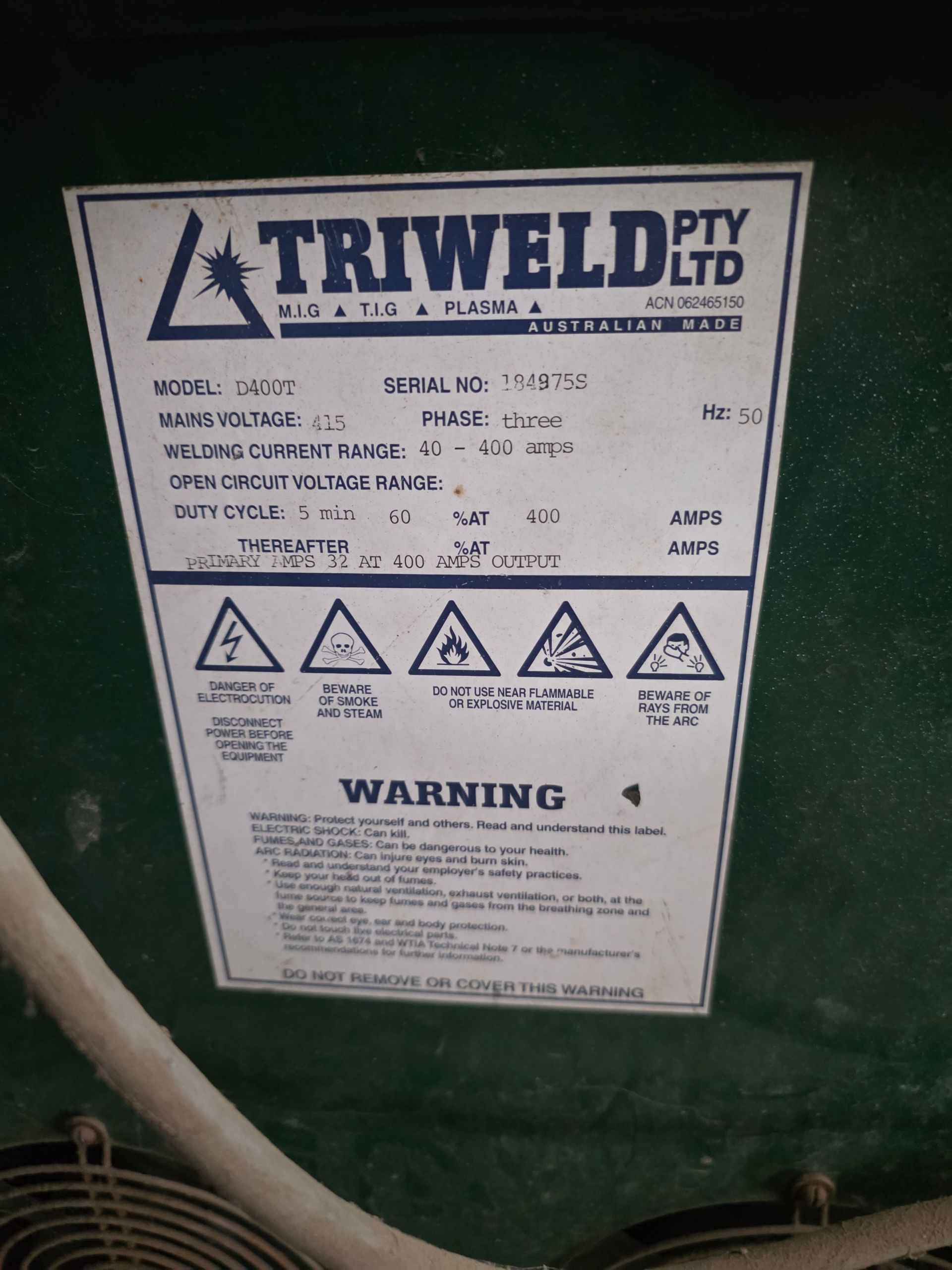 9 sheets Aluminium 5083 grade [6.1L 5mm, 6mm & 1/4”]; BOC EWM Mig welder [never used]; BOC plasma cutter; Mitech AC/DC water cooled 3ph Tig welder; Sheraton lathe; Steelmaster combo roller; Whichman combo notching guillotine; 2 x Fronius TPS 2700 mig welders; Weely roller; 8ft hydro metal bender;8ft Iredale hydro guillotine; Kleen 8ft hydro guillotine; Epic 3m metal folder; hand angle cutter guillotine; hydro pipe bender 3ph; Unique tube bender; Weldarc WIA tig welder; CIG transarc pulse welder; Ausmig welder 3ph; ASB welder; Country 240v des gen; RSM 4350psi pressure washer; pressure washer 3ph; Selson Engineering pedestal drill; Millers Falls bench drill; Servian pedestal drill; Vail aumin bandsaw; alumin bandsaw; H.D. pedestal grinder; Parken sander linisher; Linisher 3ph; 12” cut off where 3ph; Cummins des 1500rpm & Mecc Alte Spar 13.5kva 3ph gen; Perkins 3cyl des motor; 2 Holden red motors; 3 BorgWarner marine gear boxes 1.5 ratio; 3 hydraulic pumps; 50t? trolley jack; anvil on pedestal; 6 block & tackles; electric scales; 2 industry exhaust fans; 1.8m plate roller; & oodles of tools & sundries;