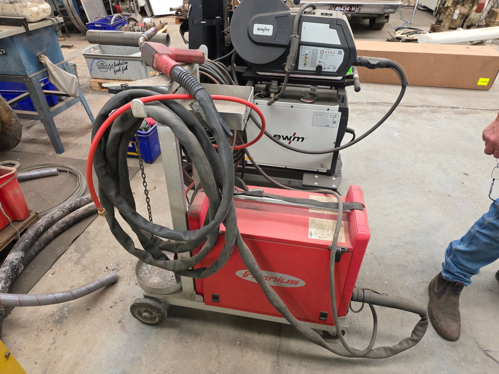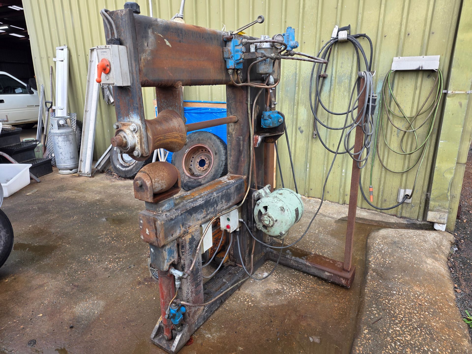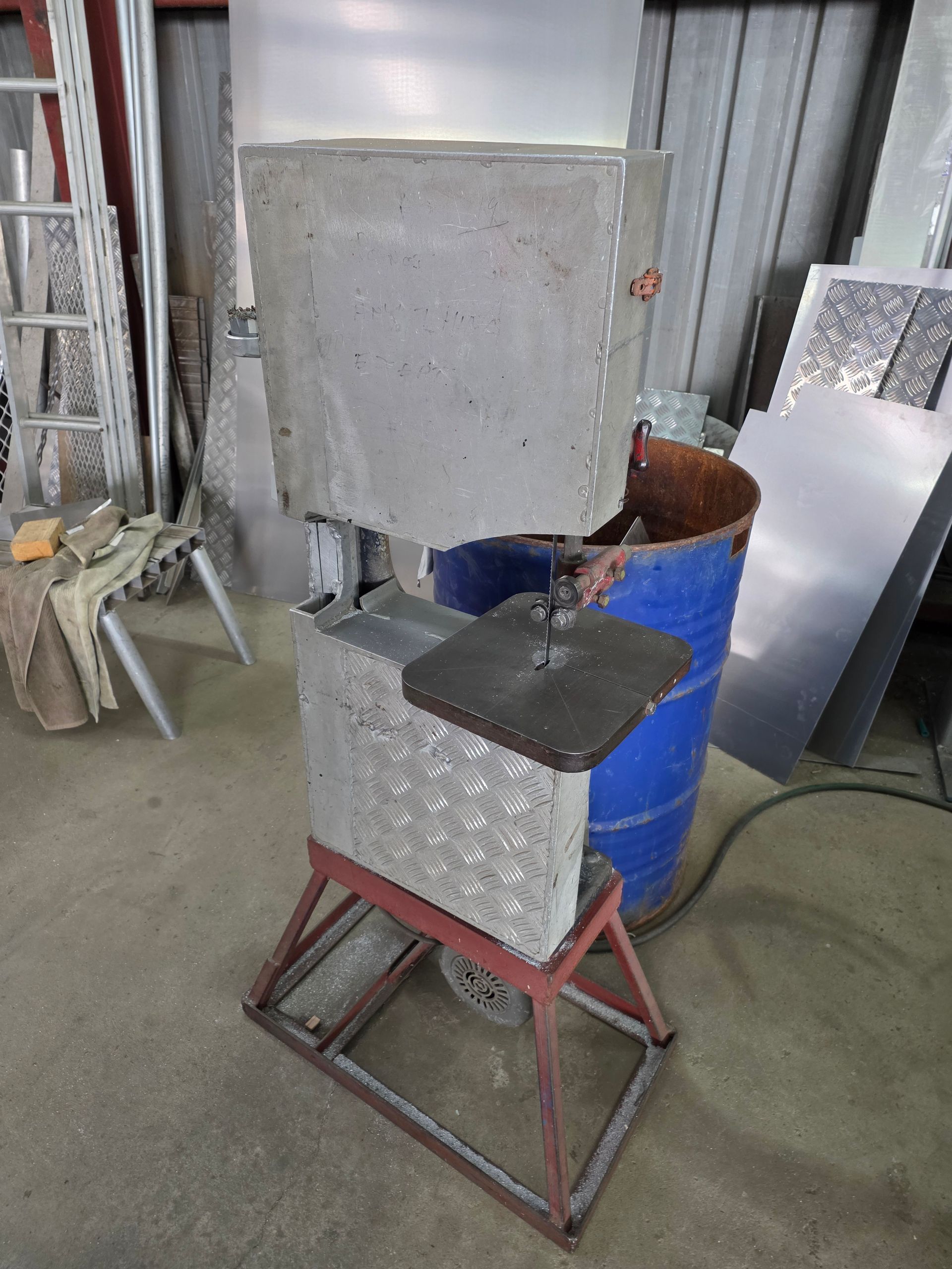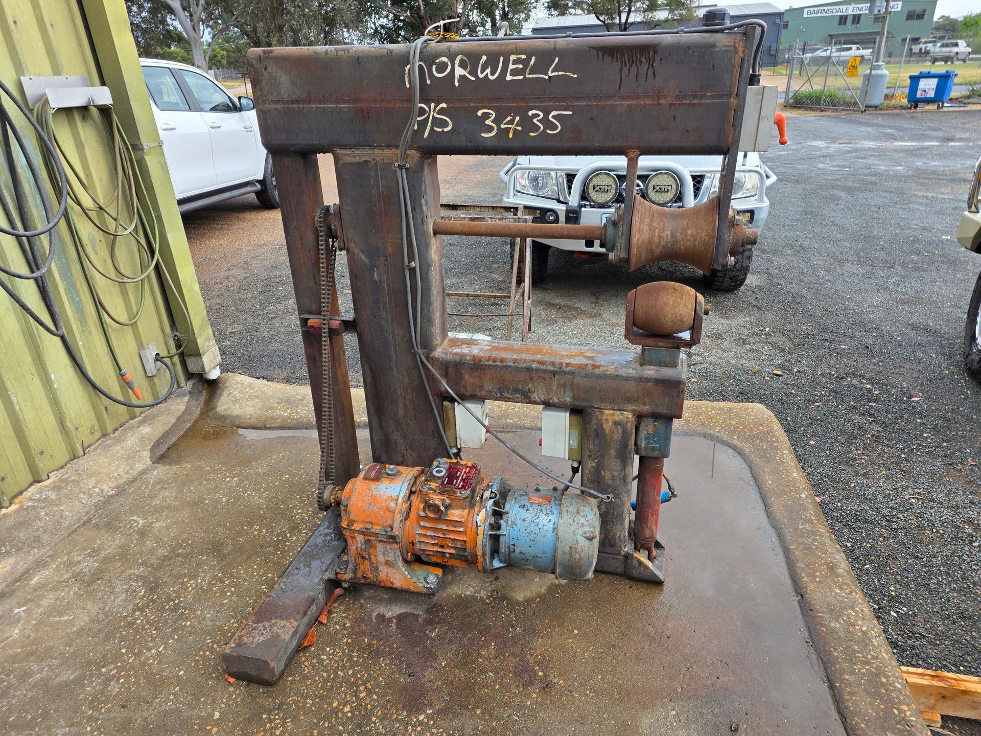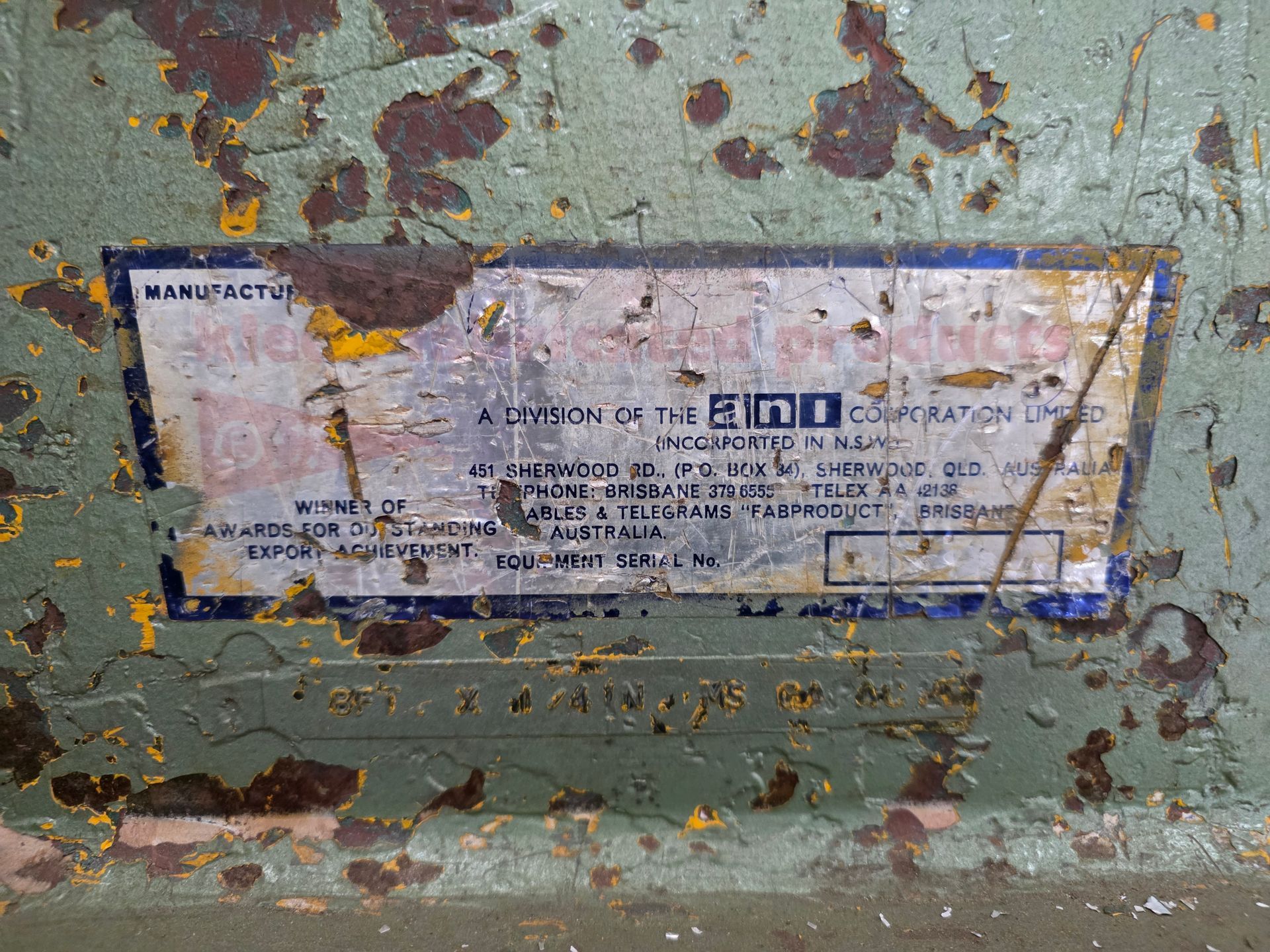 9 sheets Aluminium 5083 grade [6.1L 5mm, 6mm & 1/4”]; BOC EWM Mig welder [never used]; BOC plasma cutter; Mitech AC/DC water cooled 3ph Tig welder; Sheraton lathe; Steelmaster combo roller; Whichman combo notching guillotine; 2 x Fronius TPS 2700 mig welders; Weely roller; 8ft hydro metal bender;8ft Iredale hydro guillotine; Kleen 8ft hydro guillotine; Epic 3m metal folder; hand angle cutter guillotine; hydro pipe bender 3ph; Unique tube bender; Weldarc WIA tig welder; CIG transarc pulse welder; Ausmig welder 3ph; ASB welder; Country 240v des gen; RSM 4350psi pressure washer; pressure washer 3ph; Selson Engineering pedestal drill; Millers Falls bench drill; Servian pedestal drill; Vail aumin bandsaw; alumin bandsaw; H.D. pedestal grinder; Parken sander linisher; Linisher 3ph; 12” cut off where 3ph; Cummins des 1500rpm & Mecc Alte Spar 13.5kva 3ph gen; Perkins 3cyl des motor; 2 Holden red motors; 3 BorgWarner marine gear boxes 1.5 ratio; 3 hydraulic pumps; 50t? trolley jack; anvil on pedestal; 6 block & tackles; electric scales; 2 industry exhaust fans; 1.8m plate roller; & oodles of tools & sundries;