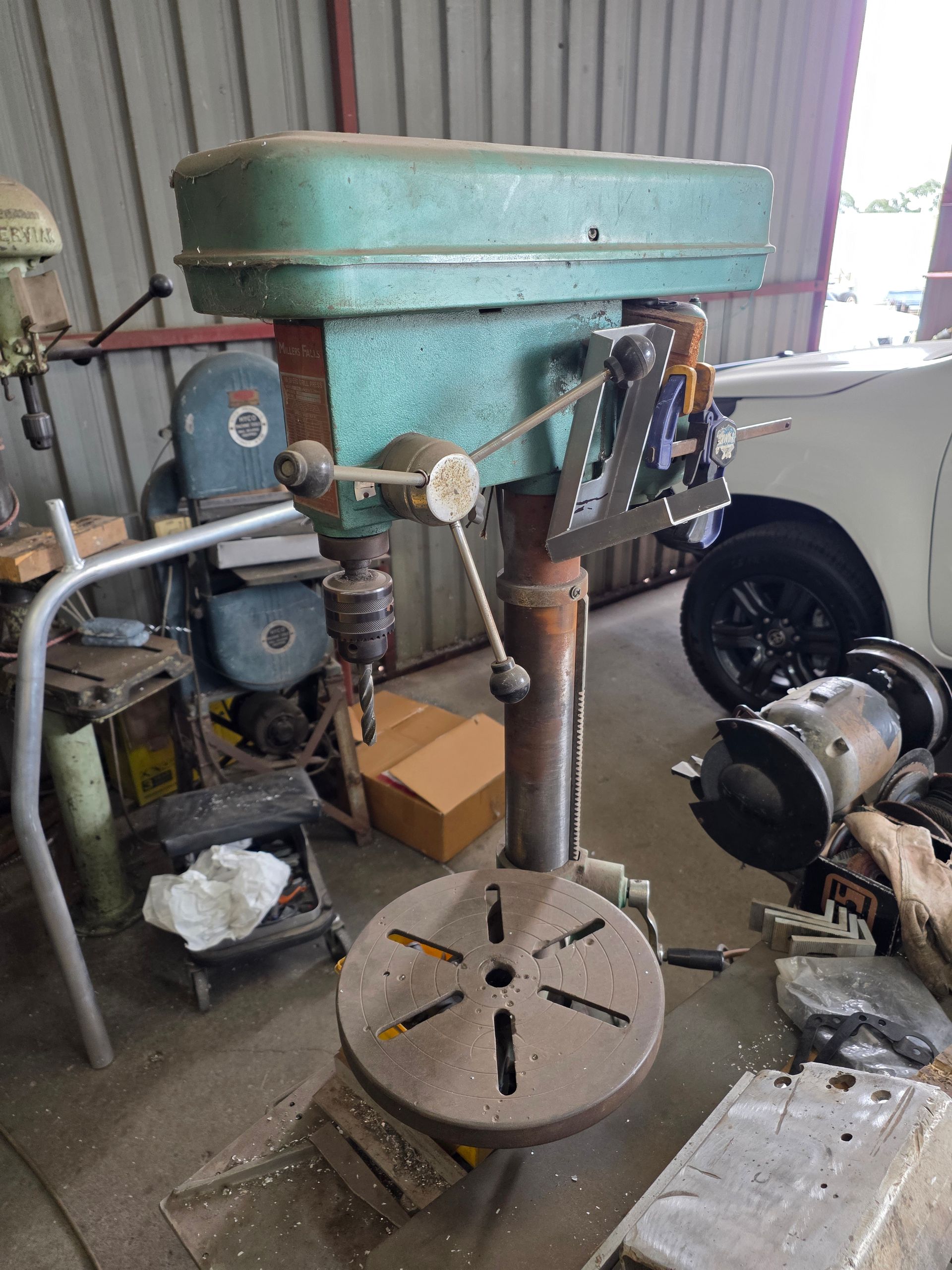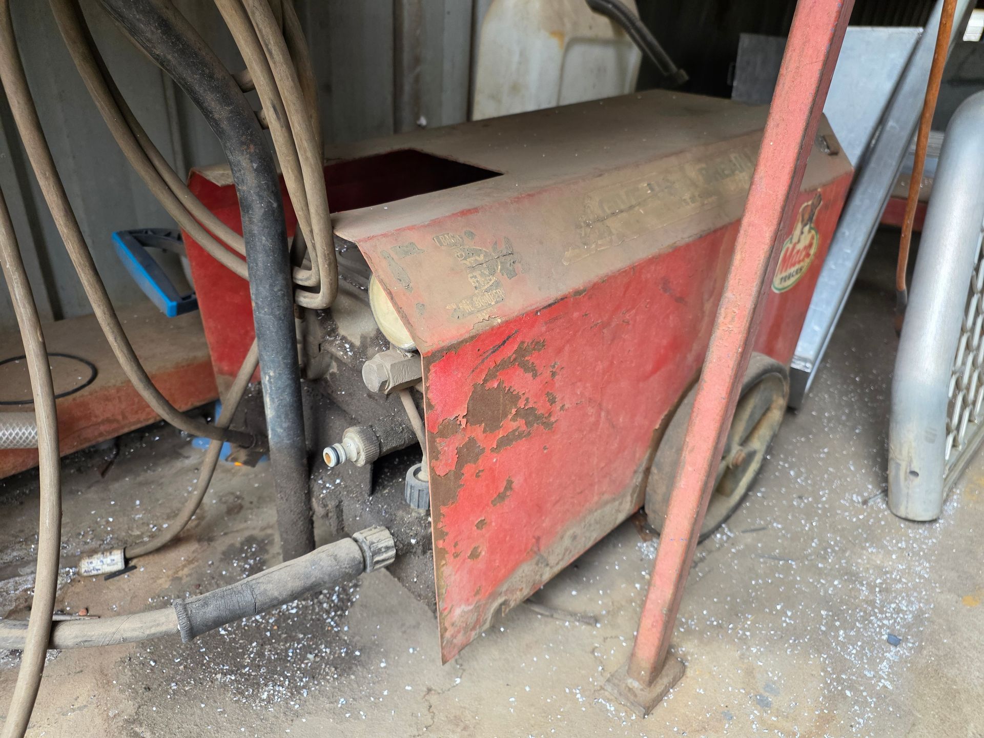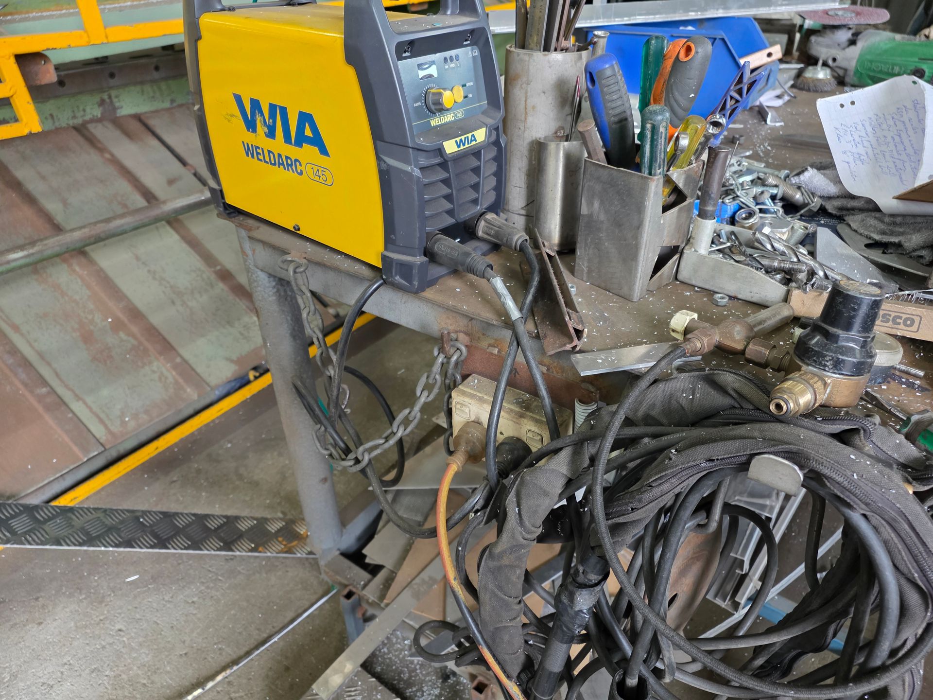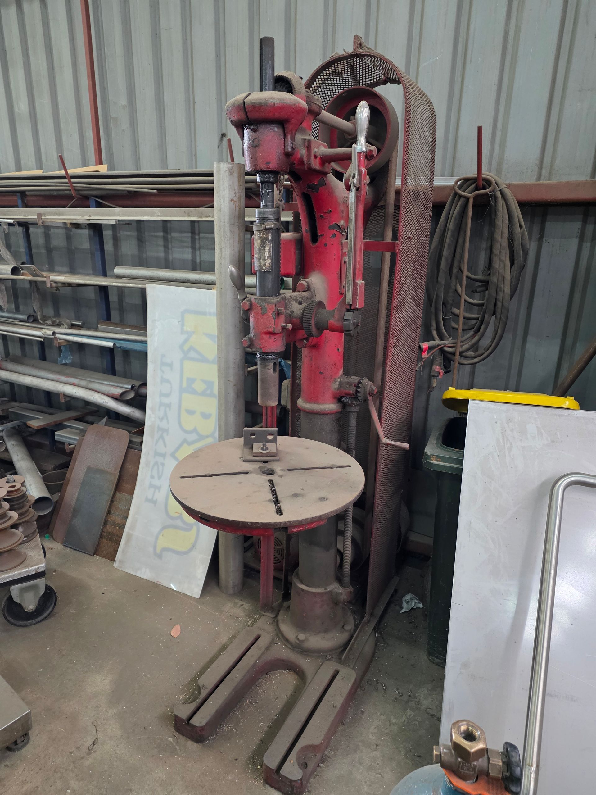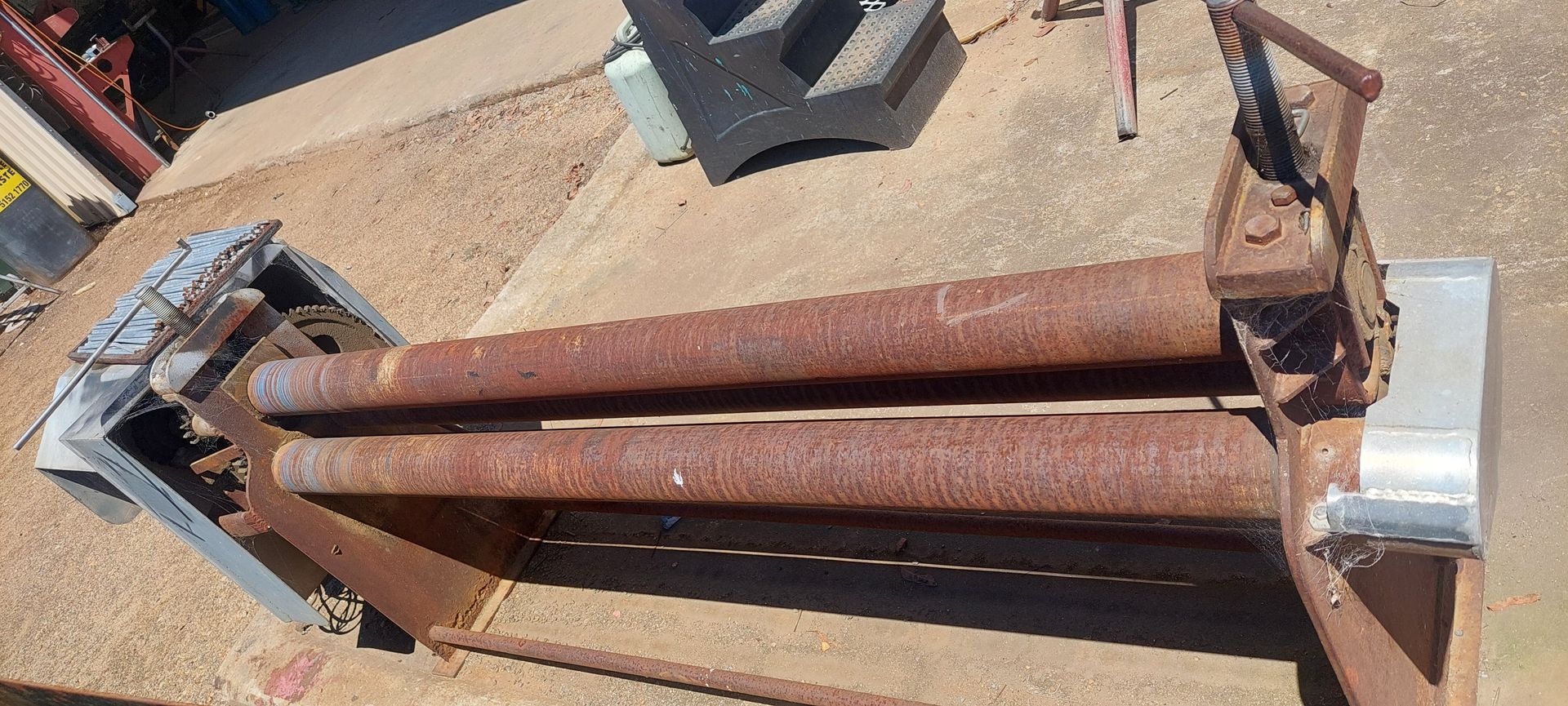9 sheets Aluminium 5083 grade [6.1L 5mm, 6mm & 1/4”]; BOC EWM Mig welder [never used]; BOC plasma cutter; Mitech AC/DC water cooled 3ph Tig welder; Sheraton lathe; Steelmaster combo roller; Whichman combo notching guillotine; 2 x Fronius TPS 2700 mig welders; Weely roller; 8ft hydro metal bender;8ft Iredale hydro guillotine; Kleen 8ft hydro guillotine; Epic 3m metal folder; hand angle cutter guillotine; hydro pipe bender 3ph; Unique tube bender; Weldarc WIA tig welder; CIG transarc pulse welder; Ausmig welder 3ph; ASB welder; Country 240v des gen; RSM 4350psi pressure washer; pressure washer 3ph; Selson Engineering pedestal drill; Millers Falls bench drill; Servian pedestal drill; Vail aumin bandsaw; alumin bandsaw; H.D. pedestal grinder; Parken sander linisher; Linisher 3ph; 12” cut off where 3ph; Cummins des 1500rpm & Mecc Alte Spar 13.5kva 3ph gen; Perkins 3cyl des motor; 2 Holden red motors; 3 BorgWarner marine gear boxes 1.5 ratio; 3 hydraulic pumps; 50t? trolley jack; anvil on pedestal; 6 block & tackles; electric scales; 2 industry exhaust fans; 1.8m plate roller; & oodles of tools & sundries;